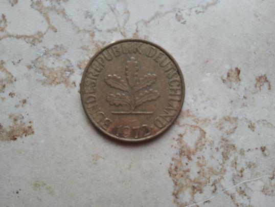 10 pfenning del '72, moneta tedesca. non è la mia monetazione, ma credo che il valore sia nullo, specie messa così.. dev' essere tra quelle monete che stanno sui 20 centesimi di euro...