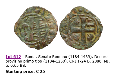 In asta ARTEMIDE 23E 2/9/2013 mi sembra sia presente un esemplare interessante di provisino romano prima emissione.