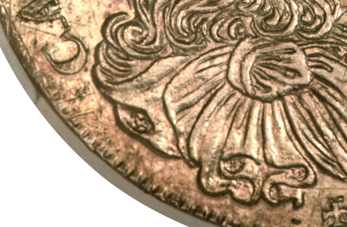 Buona sera volevo chiedere se mai qualcuno ha notato nei Mezzi Ducati con la Vittoria seduta su globo e cioè quelli del 1683 e 1684 al dritto nella parte bassa a sx del busto del sovrano questa stella.....peraltro presente anche e solo nel Ducato con gli emisferi del 1684.