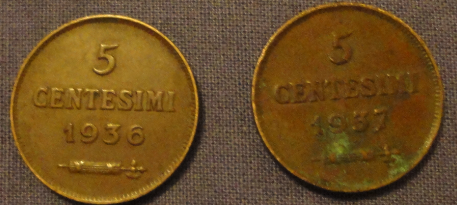 come per la discussione sui 2 cent del 1909, nella terra arata sono state trovate negli anni dal padre di una mia amica anche queste due monete...vorrei saperne di più, anche perchè ho visto la tiratura e ne avevano fatte veramente poche...