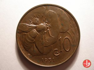 Si tratta dei 10 centesimi ape emessi tra il 1919 ed il 1937 sotto Vittorio E.III.