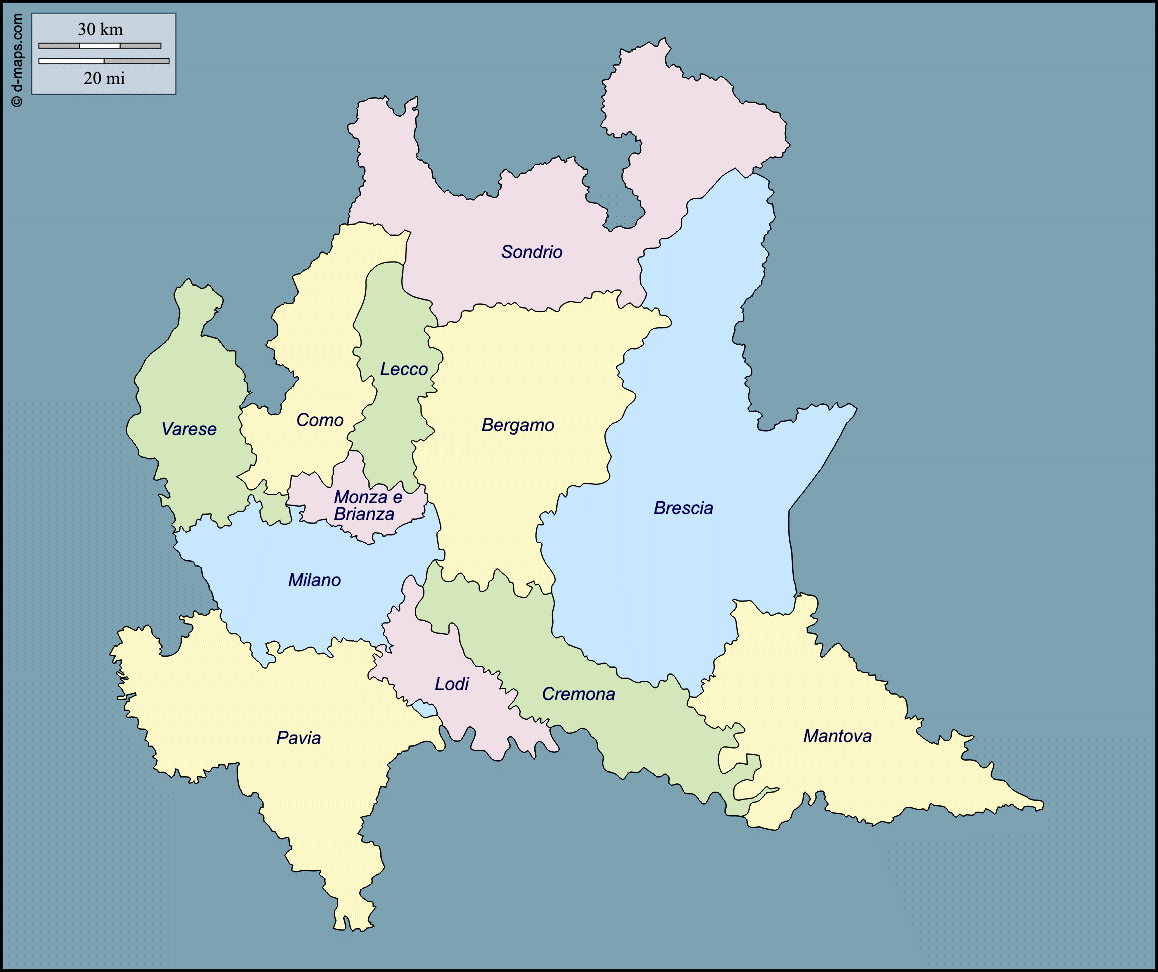 R/ La pianta della Lombardia con le nove province di un tempo