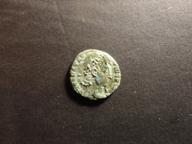 Non è una moneta bizantina. E' un follis ridotto del tipo GLORIA EXERCITVS di Costantino II o Costanzo II (non si legge bene la parte destra della legenda) per la zecca di Costantinopoli del periodo 337-340.