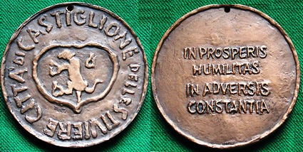 Un’artistica medaglia in bronzo (58,81 g, 48 mm) emissione amministrativa della città di Castiglione delle Stiviere, opera dell'artista e scultore mantovano Ezio Mutti.