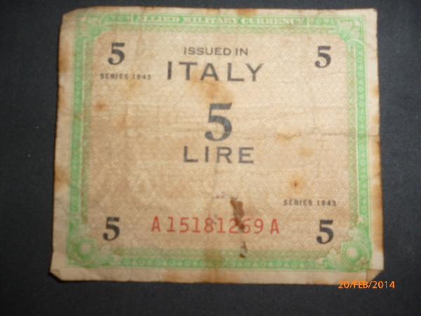 sono due biglietti da 5 am-lire, occupazione americana, prima serie 1943.