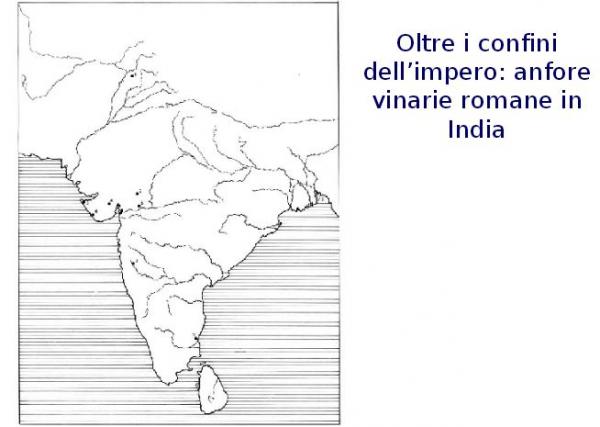 Interessante questa cartina. Dimostra che il vino romano è arrivato nei porti del Nord. Ma non dimostra, purtroppo, l'arrivo di "navi romane" in quei porti. Le anfore possono essere arrivate dopo passaggi di mano e con traffico commerciale indiano. La rotta così a Nord mi convince poco: presume o una navigazione costiera lungo la penisola arabica (cosa magari possibile, ma improbabile dopo che i romani avevano scoperto la rotta più breve a Sud) oppure una navigazione, questa sì improbabile, lungo le coste indiane da Sud a Nord. Ovviamente sono ipotesi. sarebbe interessante sapere a quando risalgono i reperti trovati. Insomma, di quali anfore si tratta.