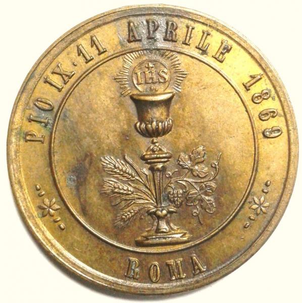Piccola medaglietta in argento e di bassa conservazione, ma storicamente significativa: realizzata nel 1905 per ricordare il sedicesimo Congresso Eucaristico Internazionale riunitosi dal 1 al 4 giugno alla presenza del Papa.