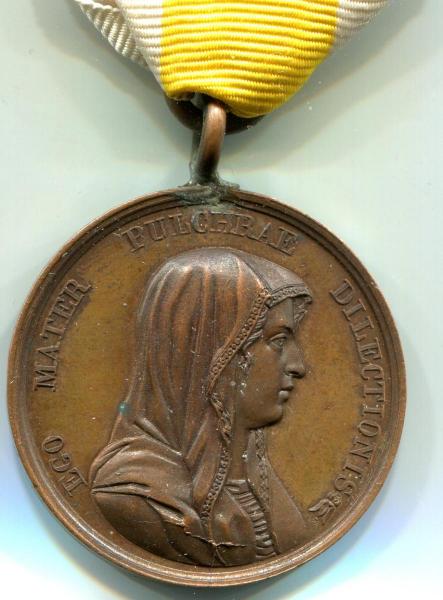 Medaglia devozionale riferibile al periodo di Leone XIII (con citazione anche di Pio IX) in Alluminio.