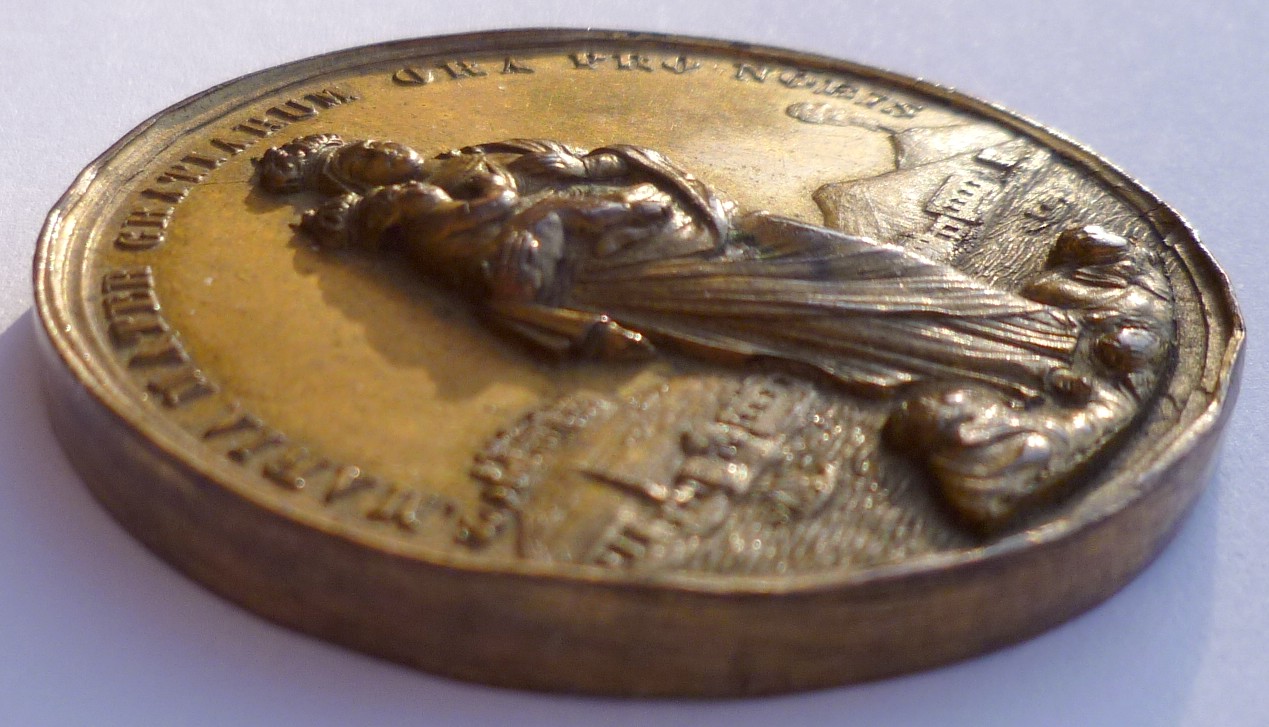 Ciao Paolo, grazie per l'attenzione, a quale cherubino ti riferisci? Le medaglie sono in bronzo dorato ........ magari fossero in oro. :blum: In quest'ultimo metallo non se ne sono mai viste ma non si esclude che all'epoca vennero battute. Ecco qualche particolare di una delle medaglie in oggetto.