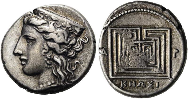 apollonia Inviato 24 Agosto, 2014 Supporter #19 Inviato 24 Agosto, 2014 Su questo statere della NAC 39 del maggio 2007 con il Minotauro a destra il labirinto è a forma di svastica in senso antiorario come negli ultimi due del post precedente, ma al centro si trova un motivo floreale simile a quello dell’esemplare del Museo di Berlino invece dei globetti. Stater circa 420, AR 11.92 g. KNOSI[ON] Minotaur running r., head facing with r. hand lowered and l. raised holding unidentified object. Rev. Labyrinth in the shape of counter-clockwise swastika with floral pattern in the centre; sunk squares in the four corners. Svoronos -; see Addenda, Arc. Eph. 1899, pl. 11, 14. Wroth, NC 1896 pl. 7, 6 var. = Le Rider p. 99, 5 and 25, 1 var. (this obverse die, but the labyrinth clockwise). Very rare and in unusually good condition for this interesting issue. Toned and good very fineEx Leu sale 76, 1999, 135. From the collection C. Gillet. The earliest coinage of Crete was struck much later than its appearance would suggest. This stater, for example, looks very much like a product from the Archaic period, yet archaeological and hoard data shows it was struck well into the Classical period – at least half a century later than its style and fabric would suggest. The relative isolation of Crete assured that in many other ways, such as forms of speech, it also developed more slowly than most other Greek lands. Crete had yet another interesting consideration for its coinage, namely that it relied upon imported coins for its silver; thus, this coin was probably overstruck on a stater of Aegina, the coinage that most frequently reached the island before about 330 B.C. This coin is one of the earliest from Cnossus, a city on the northern coast of the island. Not surprisingly, its designs derive from the city’s most famous mythological episode, the Minotaur in the labyrinth. The Minotaur had the body of a man and the head of a bull – a predictable composition for a creature born of an intimate encounter between a bull and Pasiphae, the wife of the Cretan king Minos. (Oddly enough, Suetonius tells us Pasiphae was claimed as an ancestress by the emperor Galba). The Minotaur was kept by Minos in a specially constructed labyrinth at Cnossus and was fed with condemned criminals, maidens and young boys sent from Athens as tribute to the Cretan king. It has been noted that the Phoenician Baal Moloch shared the form of the Minotaur and likewise fed on human sacrifice victims. apollonia 1 Cita
