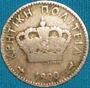Apro il 1900, con questa piccola monetina da 5 lepta di Creta (non ancora annessa alla Grecia) km 3, rame nickel.