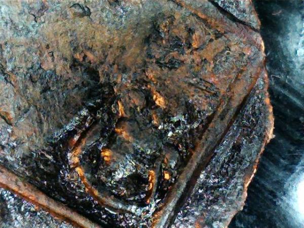 Grazie a te per aver postato il pezzo e averci dato modo di spremerci le meningi. Mi chiedo se e due lettere lette come "V.A" in realtà non siano le lettere "L.A" di RCLA, sulle quali è stata ribattuta una porzione di figura...