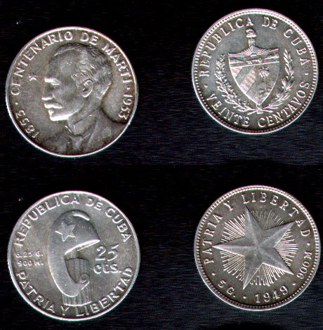 Ho letto che le monete come questi ('49 20-centavo e '53 25-centavo) visto alcuni circolazione nel sud della Florida durante gli anni cinquanta.