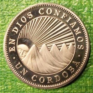 Questo rame-nichel 1972 1-cordoba nicaraguense è il primo della denominazione ad apparire in forma di moneta, poiché il primo anno edizione del 1912. (Che era stata una moneta che ha colpita lo standard così familiare agli studenti della UML: 25 grammi di argento ,900.)