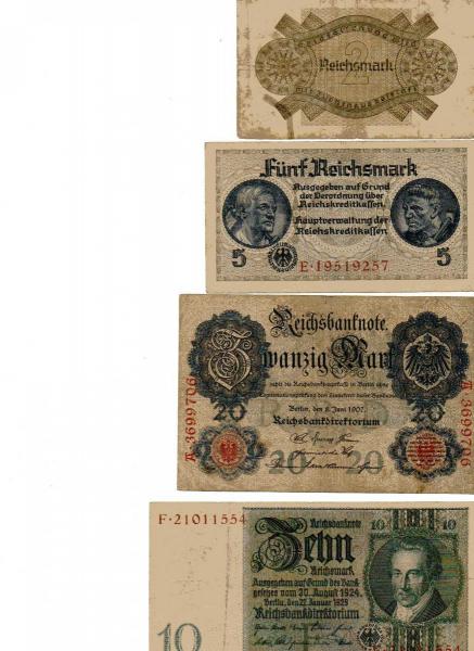 Comunque, per quanto riguarda l'identificazione, non dovresti avere problemi, è scritto chiaramente su tutte il valore, la data e il paese che le ha emesse. Abbiamo marchi tedeschi dell'Impero, di Weimar e del Terzo Reich, zlotych polacchi, corone austroungariche e rubli dell'ultimo periodo degli zar.