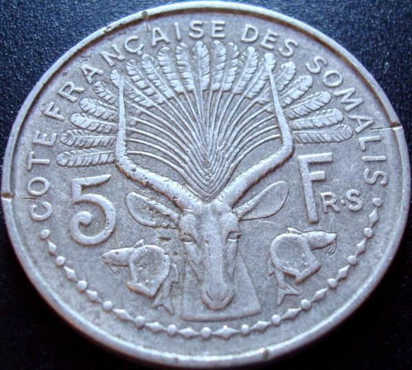 5 franchi cote francaise des somalis 1948, peccato per la bassa conservazione, ma pur sempre coniata in poche centinaia di migliaia di pezzi :)