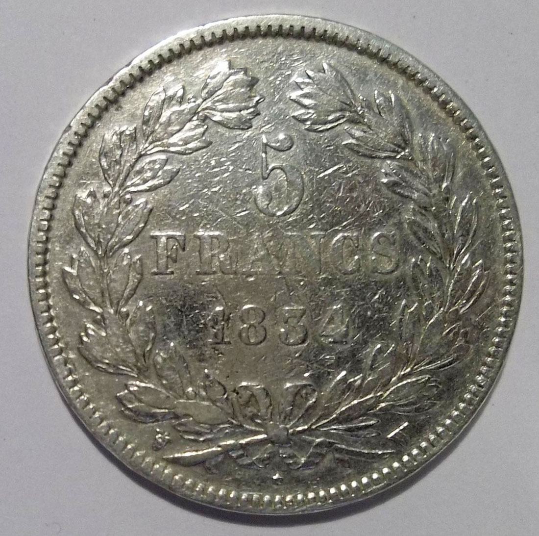 Ho preso uno scudo di Louis Philippe I, Roi des Français - 1834 zecca W, che acquistai 3 anni fa al prezzo dell’argento. Pulita, lucidata probabilmente con prodotti aggressivi, ha perso qualsiasi fascino e quella sua lucidità innaturale, visto lo stato di campi e rilievi, la rende praticamente inguardabile. Peccato, perché il pezzo in sé per quanto <MB è carico di storia e altrochè se può stare in una collezione tipologica.