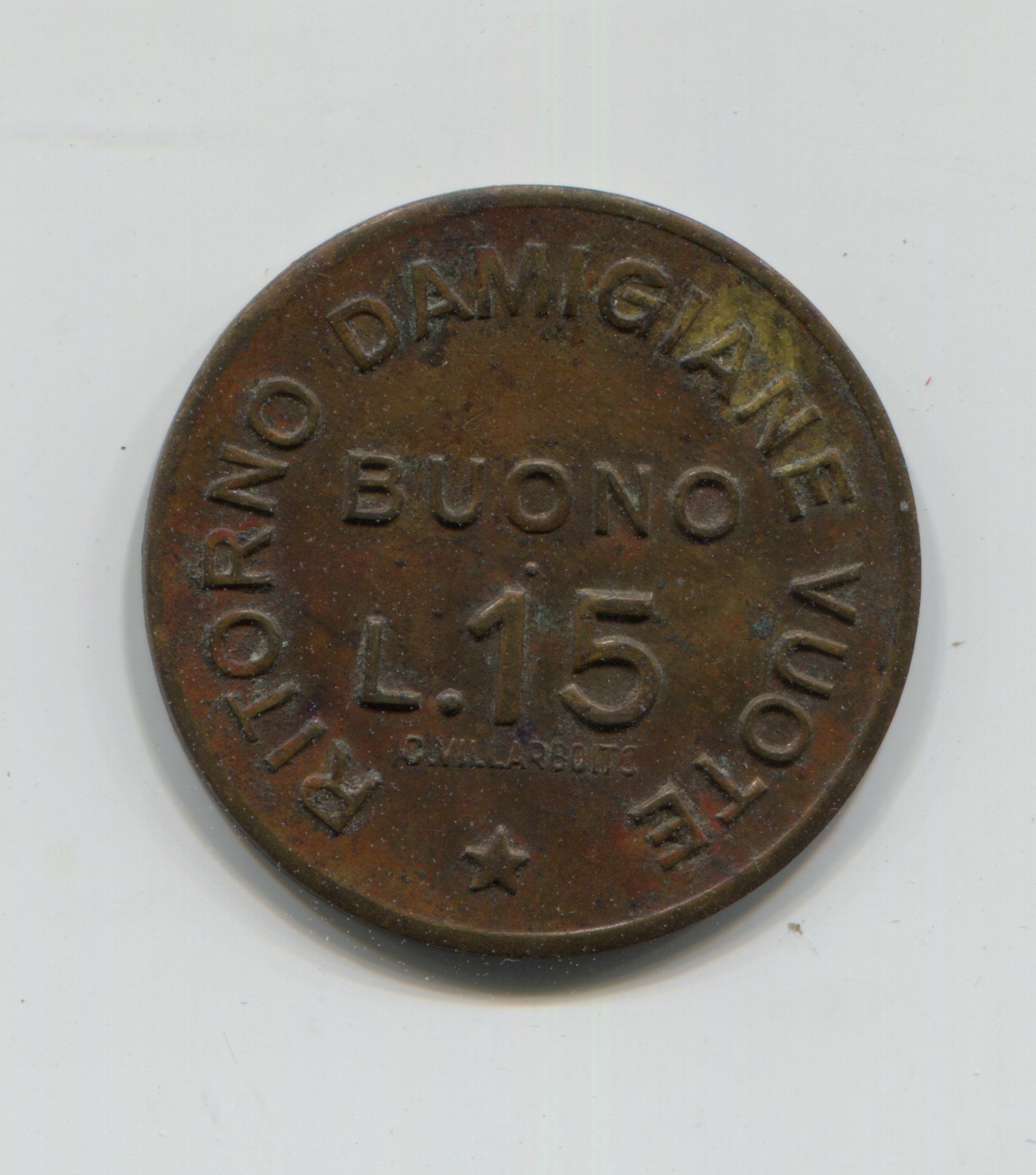 Gettone Vini Fratelli Montefameglio Torino - Ritorno damigiane vuote buono da lire 15