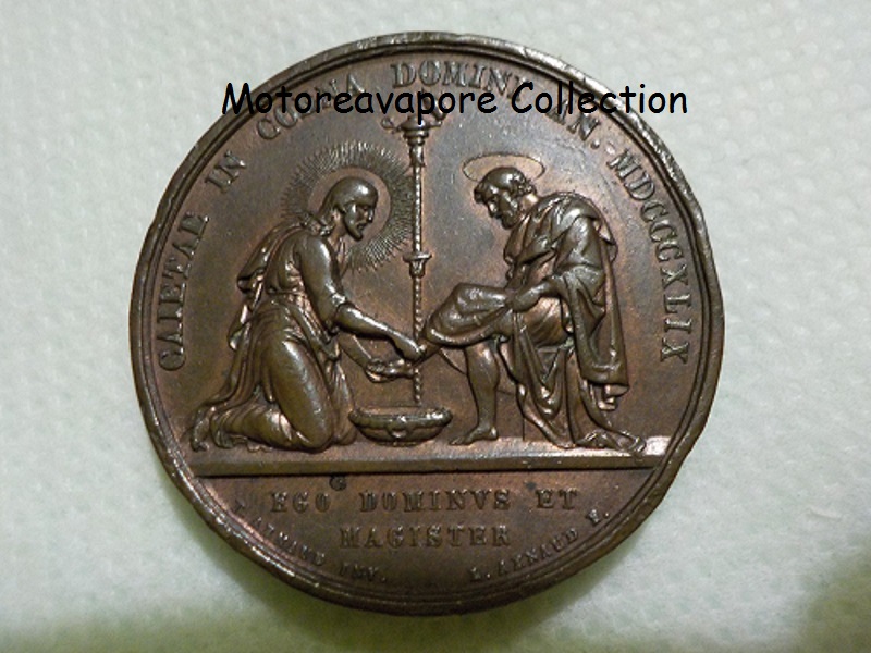 Questa medaglia fu coniata anche in argento per ricordare la lavanda dei piedi celebrata da Sua Santita' Pio IX nella Cattedrale di Gaeta, il giovedì Santo 5 aprile 1849.