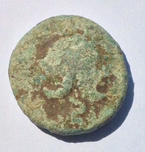 Però al vertice del capo della moneta postata, al D., c'è proprio una semiluna, carattere tipico identificativo di Iside. Sono d'accordo  che il rovescio è difficilmente collocabile. Tieni presente che nelle monete ISIS FARIA  esistono rovesci con la figura sia a destra che a sinistra.