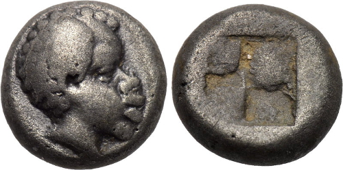 Obv: Head of African right. Rev: Quadripartite incuse punch.