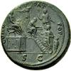 Æ-Sesterz, 114/116, Rom; 24,57 g. Drapierte Büste r. mit Lorbeerkranz//Kaiser sitzt auf Plattform r., daneben drei Offiziere, davor sechs Soldaten. BMC 1017 var.; Coh. 176; MIR 548 v; RIC 656 var.