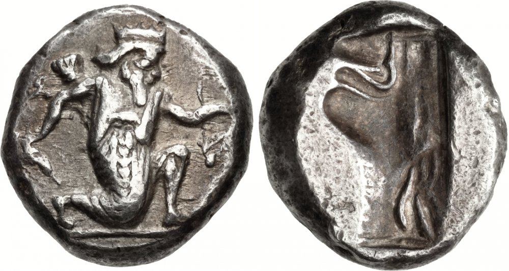 PERSIA, Achaemenid Empire. temp. Artaxerxes I to Darios II. Circa 455-420 BC. AR Siglos (15.5mm, 5.39 g). Lydo-Milesian standard. Sardes mint. Persian king or hero, wearing kidaris and kandys, quiver over shoulder, in kneeling-running stance right, holding dagger in right hand, bow in left / Incuse punch. Carradice Type IV, Group A (pl. XIII, 33); cf. Meadows, Administration 326 (Type IV, Group C); BMC Arabia pl. XXVII, 7; cf. Sunrise 27 (daric). Toned. VF. Well struck on a broad flan.
