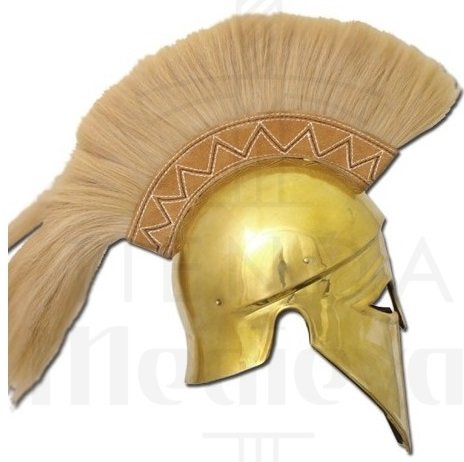 Da uno statere di Ambracia in Epiro, la testa della dea guerriera Atena è proposta con un particolare elmo corinzio, apparentemente ornato con una cresta a forma di toro .