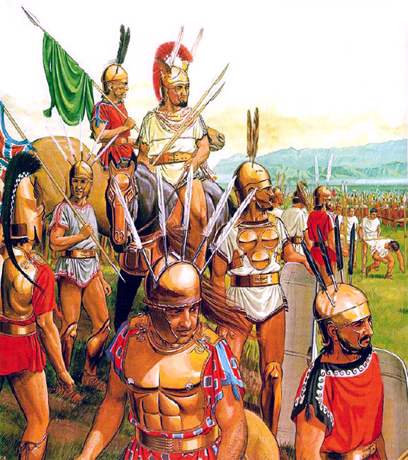 ILLUSTRAZIONE: SOLDATI ROMANI DELL'EPOCA REPUBBLICANA (1= VELITE, 2 = HASTATUS, 3= PRINCEPS, 4 = TRIARIUS).