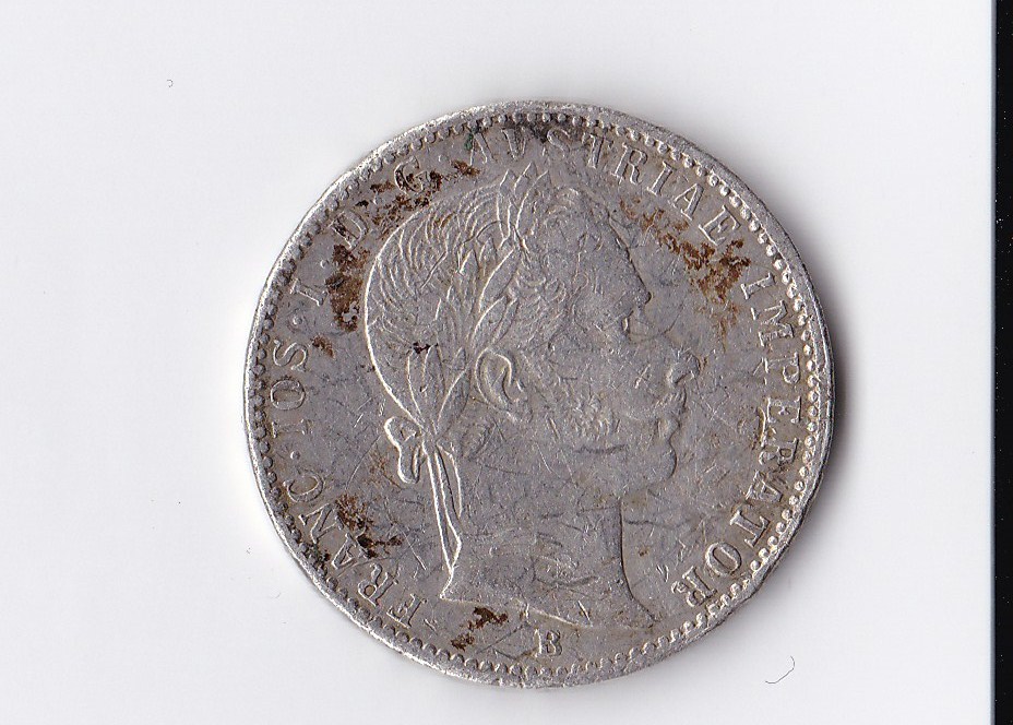 mi sono documentato  non riesco a catalogare questa moneta d'argento da 1/4 di fiorino 1861,impero austriaco francesco -giuseppe d'asburgo -lorena  non riesco a capacitarmi nella sigla che porta nella parte della faccia con simbolo B ,a quel che mi risulta l'unico simbolo di produzione che puo' avere e' il V di venezia dove e' stata prodotta,e quanto puo' valere essendo moneta in bb credo non comune?