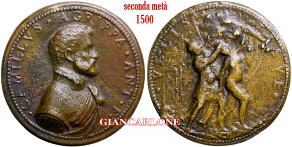 Bronzo, mm. 44,1 - Medaglia firmata  IO BA BO  ( GIOVANNI BATTISTA BONINI )  Orafo comasco, attivo nella metà del XVI secolo. Lavorò a Roma attorno al 1573 al tempo di Papa Gregorio XIII. Gli viene attribuita la medaglia di Camillo Agrippa architetto della corte papale.