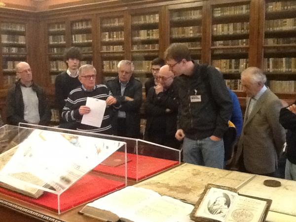 In questa foto, molta attenzione suscitata dal diploma originale di FEDERICO BARBAROSSA del 1156 con il privilegio di battere moneta, preziosissimo documento storico.