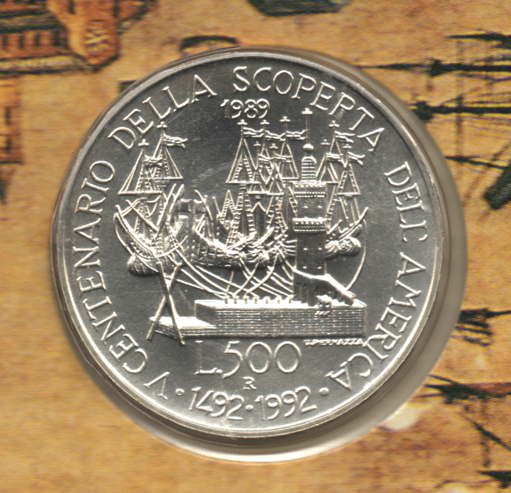 500 Lire 1989 Scoperta dell'America Repubblica Italiana Monetazione in Lire 1946-2001
