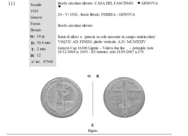 Gettone Casa del Fascismo Genova