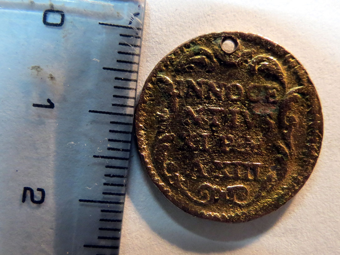 non metti le misure ponderali...... penso comunque che sia un quattrino di Innocenzo XI - anno XIII