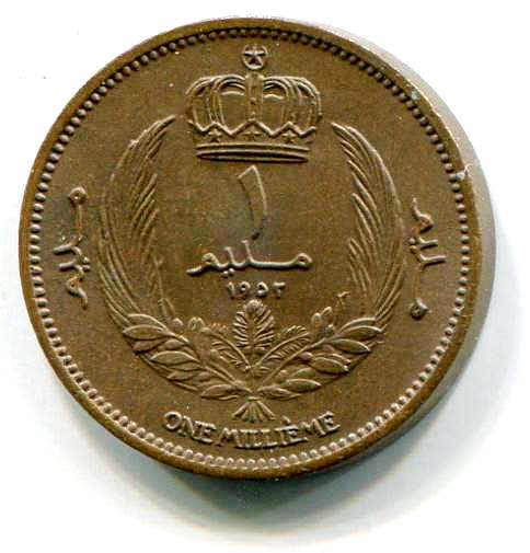 Nel 1952 la frazione più piccola era utilizzata poichè la sterlina libica aveva lo stesso valore della sterlina britannica, pari a circa 500 lire italiane, un Millieme era quindi equivalente pressapoco a mezza lira.