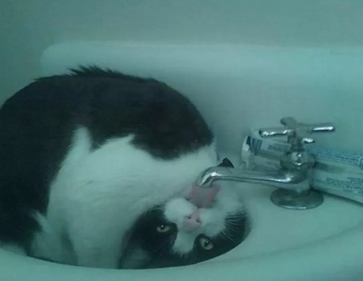 Il gatto vuole farsi una doccia o vuole salvare il suo umano dall'acqua ?