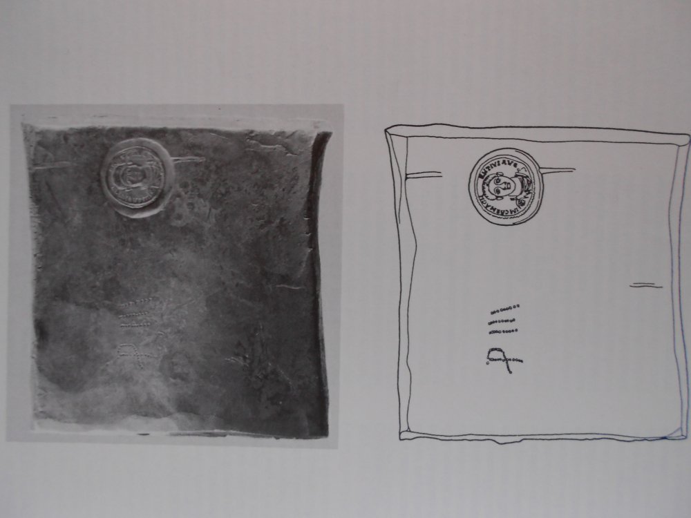Ti invio alcune note dettagliate e foto dei tre lingotti d' argento provenienti dal tesoro di Kaiseraugst : pesi di 953 grammi , 948 grammi e l' ultimo di 665 grammi dal quale fu tolto un pezzo del lingotto , in origine corrispondevano a tre libbre l' uno . Il bollo con l' immagine di Magnenzio visto di fronte , corrisponde , come legenda impressa nel bollo , alle monete emesse a Treviri . Su un bollo e' anche impresso il nome del Magistrato monetale : Gronopi e il peso di riferimento P III , tre libbre , piu' il nome : Lucubrio , nome di una officina ?
