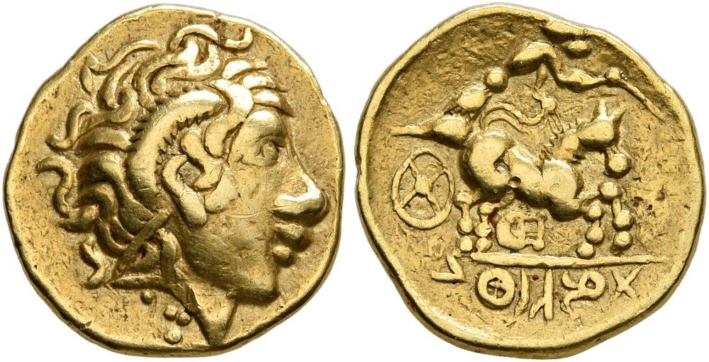 Anm.: In der Literatur findet sich nur eine einzige keltische Imitation dieses Herrschers (Auktion Obolos 10, Zürich 2018, Nr. 84.)