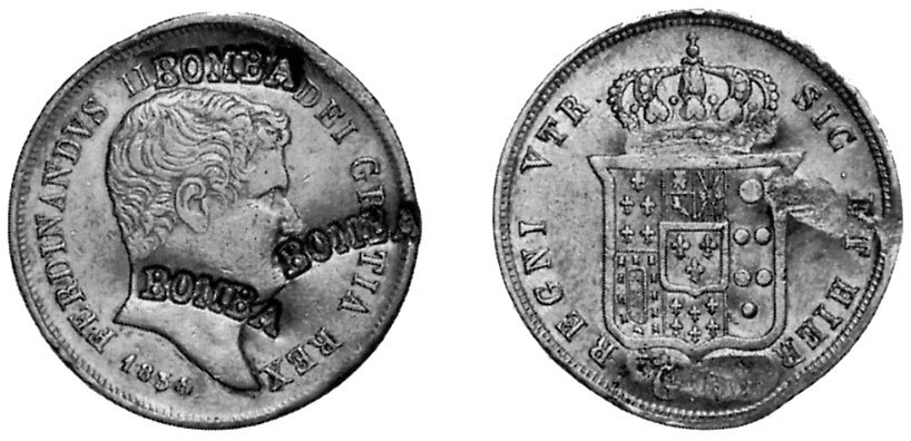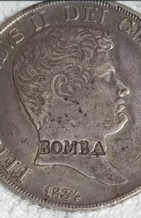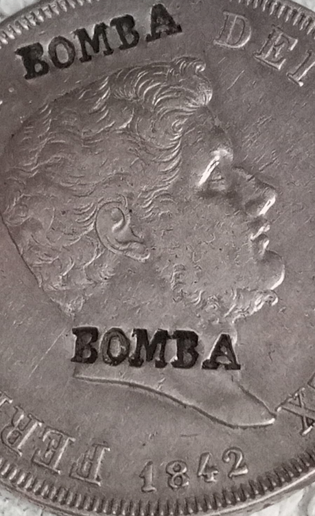 premesso che non ne so nulla assolutamente, la contromarca OLIM sulla legenda mi pare un buon indizio... OLIM , ovvero in latino "una volta", rileggendo la dicitura con la contromarca mi pare di scorgere una specie di damnatio memoriae... Ferdinando II, una volta, era re per grazia di dio.