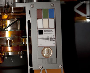 Edgett spiega che per la comparazione nelle fotografie è sempre utile un oggetto di una dimensione nota a tutti, con una persona presente in foto se si tratta di una spiaggia od una scogliera, di un piccolo oggetto quotidiano per qualche metro, e nel nostro caso di una moneta se si tratta di una vista da meno di un metro di distanza, un'apposita telecamera la sovrappone alla visuale