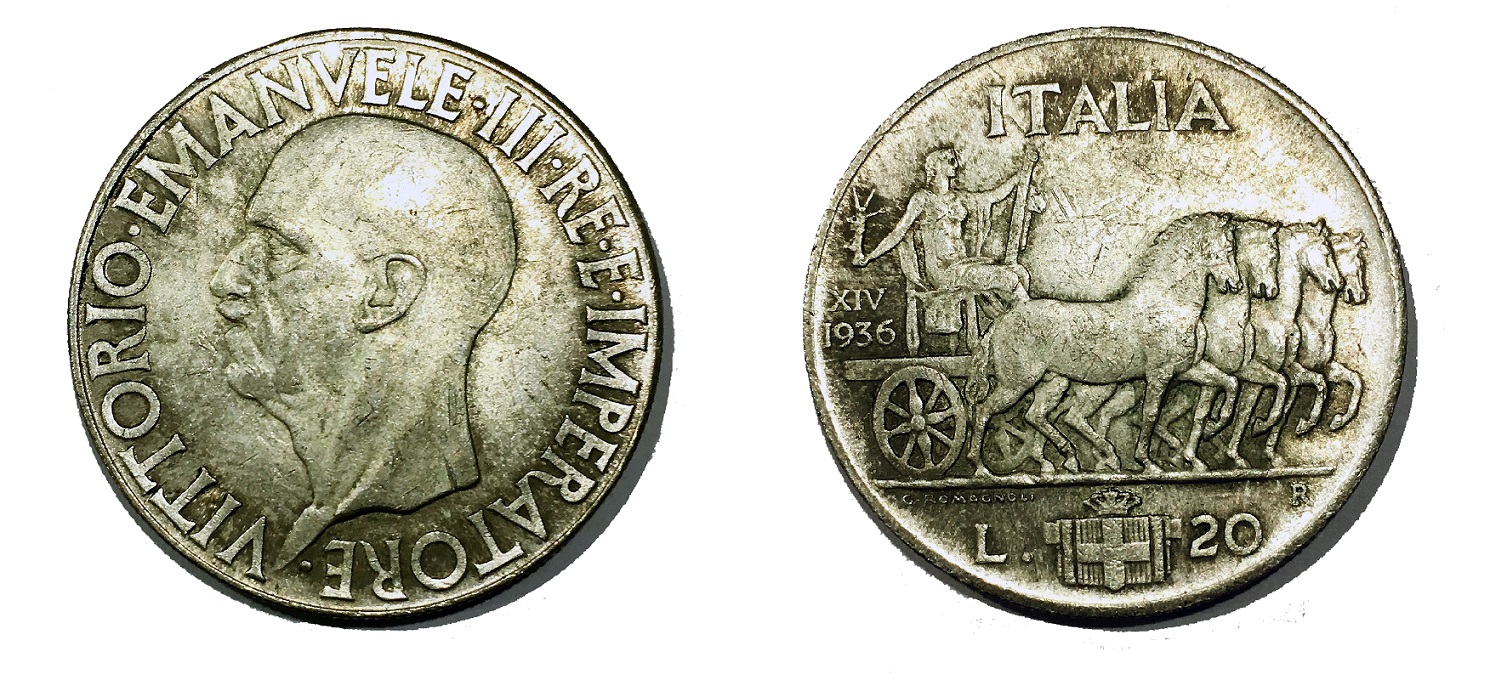 20 Lire 1936 Anno XIV Impero Regno D'Italia Vittorio Emanuele III 1900-1943 (2).jpg