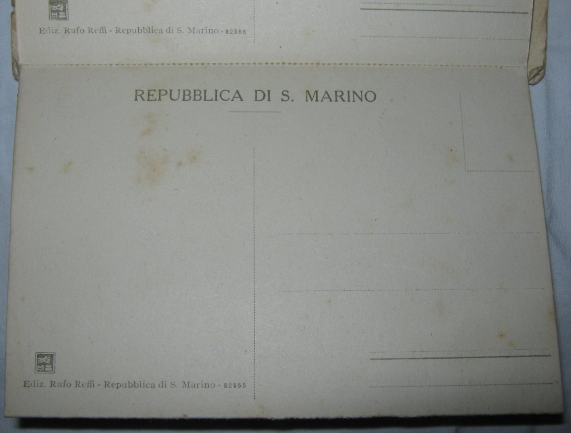 Tm_NPZ Inviato 5 Giugno, 2017 #1 Inviato 5 Giugno, 2017 Amici, voglio sottoporvi questo oggetto che mi ha sempre affascinato; si tratta di un album con 12 cartoline riguardanti la Repubblica di San Marino. A quanto pare è completo, in quanto non vedo segno di strappo sull'ultima raffigurazione. Non conosco l'anno di produzione (sembrerebbe prodotto nel lasso di tempo dagli anni '20 agli anni '30 del '900); l'unica cosa chiara è l'Autore: Ditta, Pittore: Rufo Reffi. Documentandomi, sul sito dell'UFN sammarinese (che si occupa delle emissioni filateliche e numismatiche della piccola Repubblica) si legge: [...] Anche un Sammarinese operò nel campo della filatelia con onestà e coraggio: fu Alfredo Reffi che nel 1855 fondò la ditta cui volle dare il nome di “Antica casa Filatelica” , commerciò valori postali e stampò le prime cartoline illustrate riproducenti vedute del Paese di fine secolo. Esse sono anche oggi oggetto di appassionata ricerca e, data la loro rarità, hanno raggiunto un alto valore. Notevole, quindi, la figura di questo Sammarinese che può essere considerato un pioniere nell’attività che aprì le porte al grande commercio turistico. Potrebbe essere un parente del citato Alfredo Reffi? Vi chiedo quindi cosa ne pensate di tale oggetto; se potete, anche una valutazione economica, per pura curiosità. Non desidero comunque venderlo, in quanto si tratta di un ricordo che spesso guardavo assieme a mio nonno, che mi ha trasmesso la passione per la Numismatica e per il piccolo Stato in questione Vi ringrazio in anticipo!
