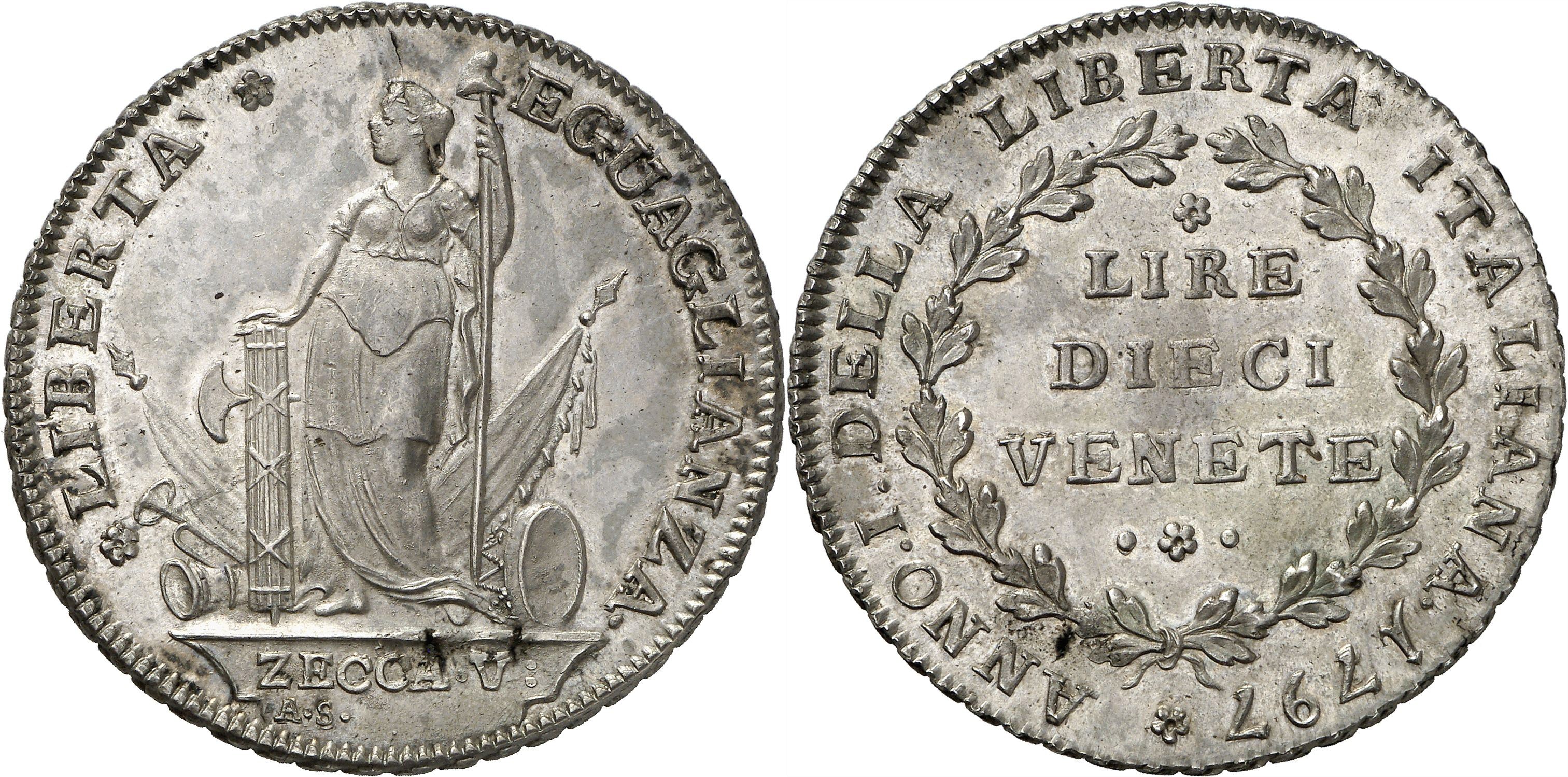 La zecca è quella di Venezia, è ufficiale e ci sono faldoni e faldoni di documenti nell'ASVe che lo accertano. Se anche poi quelli fossero considerati come invasori (in effetti i Francesi non erano proprio ben visti dalla popolazione quando arrivarono dopo i fatti del maggio 1797 e poi del trattato di Campoformido di ottobre), e se anche una parte del patriziato fosse stata in effetti favorevole al nuovo occupante, le monete sono veneziane senza dubbio. Certo non più dogali, come anche la famosa c.d. osella del Lido (spesso ristampata su tondelli austriaci, non dimentichiamolo), ma sicuramente ufficiali, e di corso anche se come evidenziato estremamente rare.