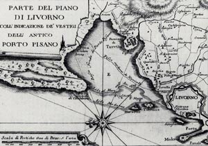 Ancora litografie o vecchie mappe del porto di Livorno, dove le Galee caricavano e scaricavano le loro preziose merci..