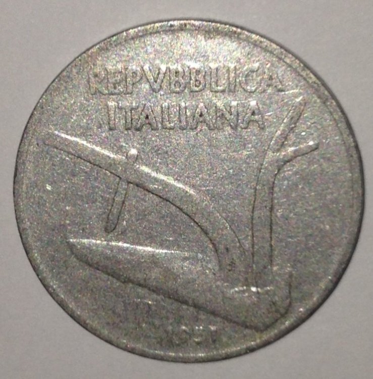 Salve, volevo mostrarvi questa moneta da 10 lire del 1951 per chiedervi innanzi tutto se autentica. In caso di esito positivo, mi chiedevo se il segno di zecca mancante deriva dall'usura o se è un errore (che da valore spero).