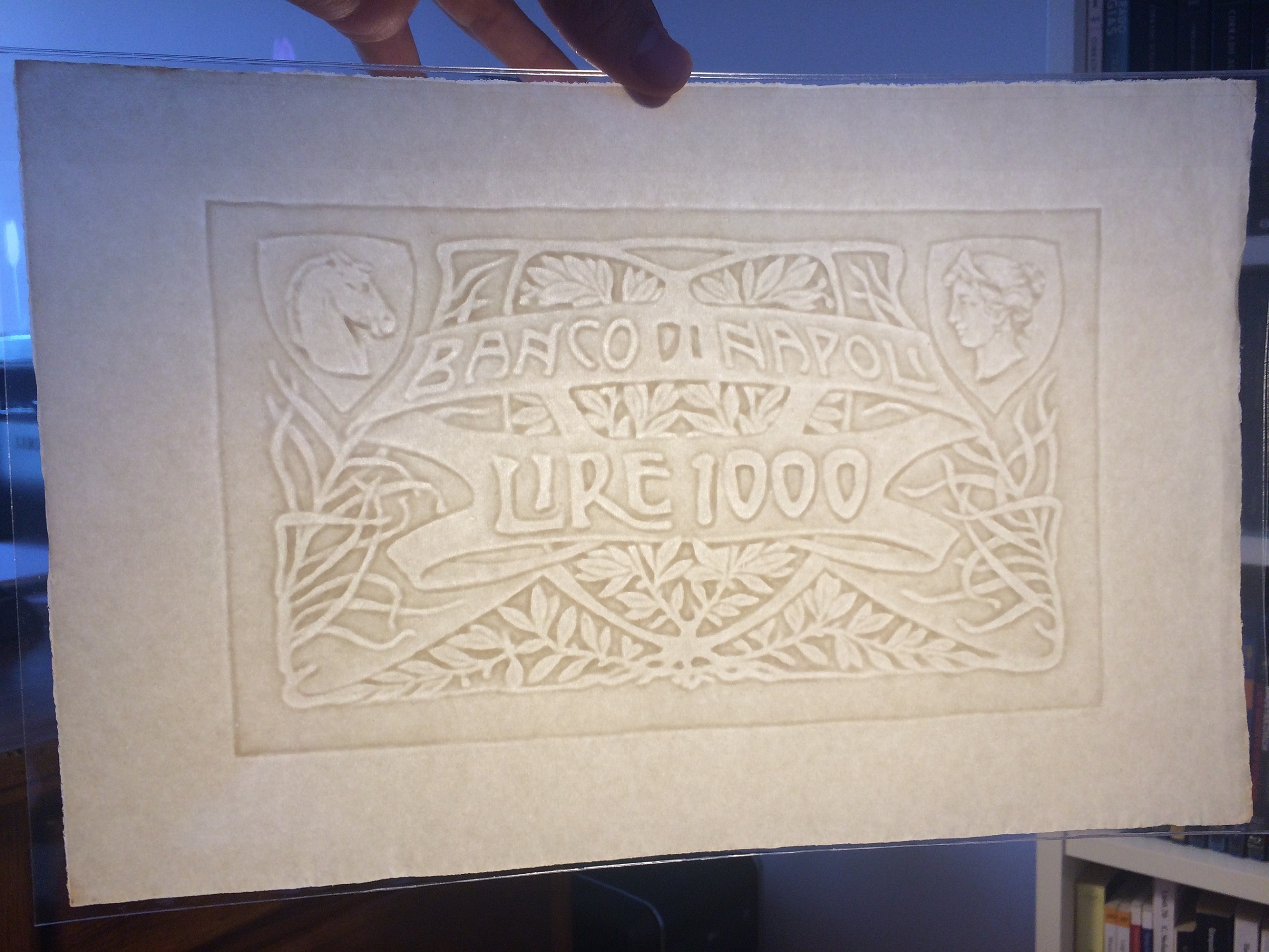sono in possesso di alcuni fogli di carta filigranata e volevo chiedervi se avete gia visto qualcosa del genere e di cosa si tratti secondo voi. Non mi sembrano filigrane di banconote effettivamente circolanti.