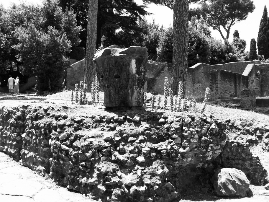 Un falchetto che volteggia sulla Rocca del Palatino, mentre noi - sotto -  ci divertivamo a giocare con la terra, e un capitello corinzio attorno al quale stanno fiorendo gli acanti.
