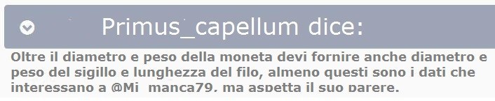 _____________________________ Oltre il diametro e peso della moneta devi fornire anche diametro