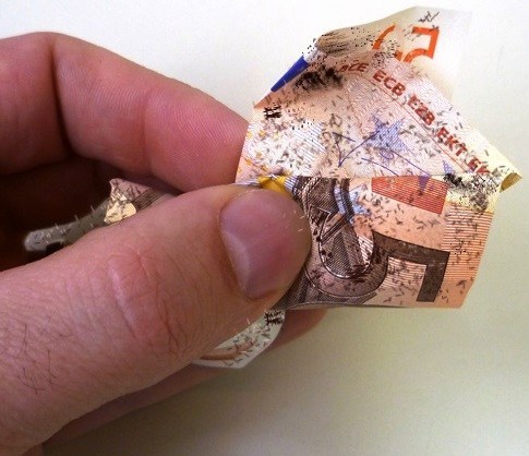 Abbiamo visto @occhiolungoxxl alle prese con monete antiche, moderne, exonumia, patacche, monete in euro, banconote in lire, ecc. ecc. ora è alle prese con una banconota in euro :D